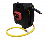 Катушка воздушная. Полиуретановый шланг давление до 300 psi. Корпус из АБС-пластика, ударопрочный. Направляющая катушка поворачивается на 180 градусов, что значительно расширяет площадь работ. Может быть зафиксирована под углом 45, 90, 135 градусов. Длина шланга 10 м. Диаметр шланга: 8 мм, наружный диаметр: 12 мм.