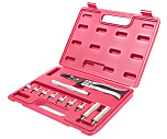 Позволяют сэкономить время, рабочую силу. Полный набор инструментов для установки и извлечения пружины клапана без необходимости снятия головки блока цилиндров двигателя. Универсальный. Подходит для работы с 12, 16, 20, и 24-х клапанными двигателями.
