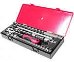 Набор удлинителей в прочном презентабельном боксе 8 предметов. В комплекте: удлинитель под ключ 1/2: 2, 3, 5, 10 - 4 шт; переходник карданный 1/2 - 1 шт; 1/2 вороток с шарниром 15 - 1 шт; 1/2 вороток с плавающей головкой 12 - 1 шт и трещотка 1/2 (резиновая рукоятка) - 1 шт.