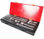 Набор удлинителей в прочном презентабельном боксе 8 предметов. В комплекте: удлинители 1/2": 2", 3", 5", 10" - 4 шт.;переходник карданный 1/2" - 1 шт; вороток 1/2" с шарниром 15" - 1 шт; вороток 1/2" с плавающей головкой 12" - 1 шт; трещотка на шарнире с фиксатором 1/2" - 1 шт. Квадрат присоединения 1/2"