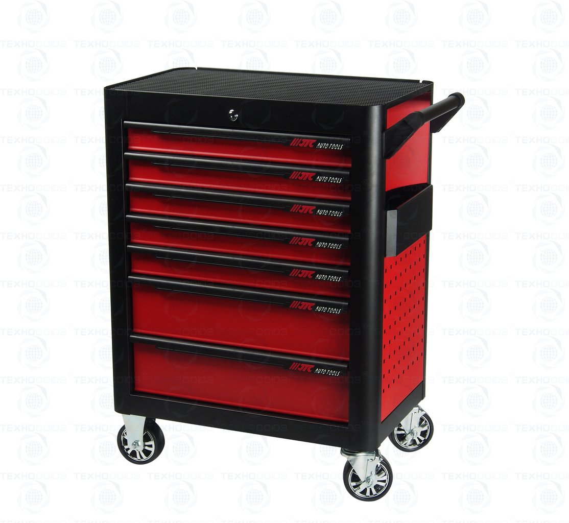 - Перфорированные внутренние стенки боковых ящиков с квадратными отверстиями предоставляют возможность разместить дополнительные аксессуары для хранения инструментов. Применяется с серией подвесных приспособлений JTC-3218.