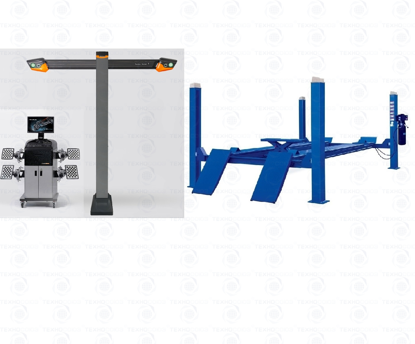 Комплект F4D-4 Подъемник 4-хст. г/п 4т,эл/гидр. с траверсой+T 7212 TAB Стенд сход-развал 3D