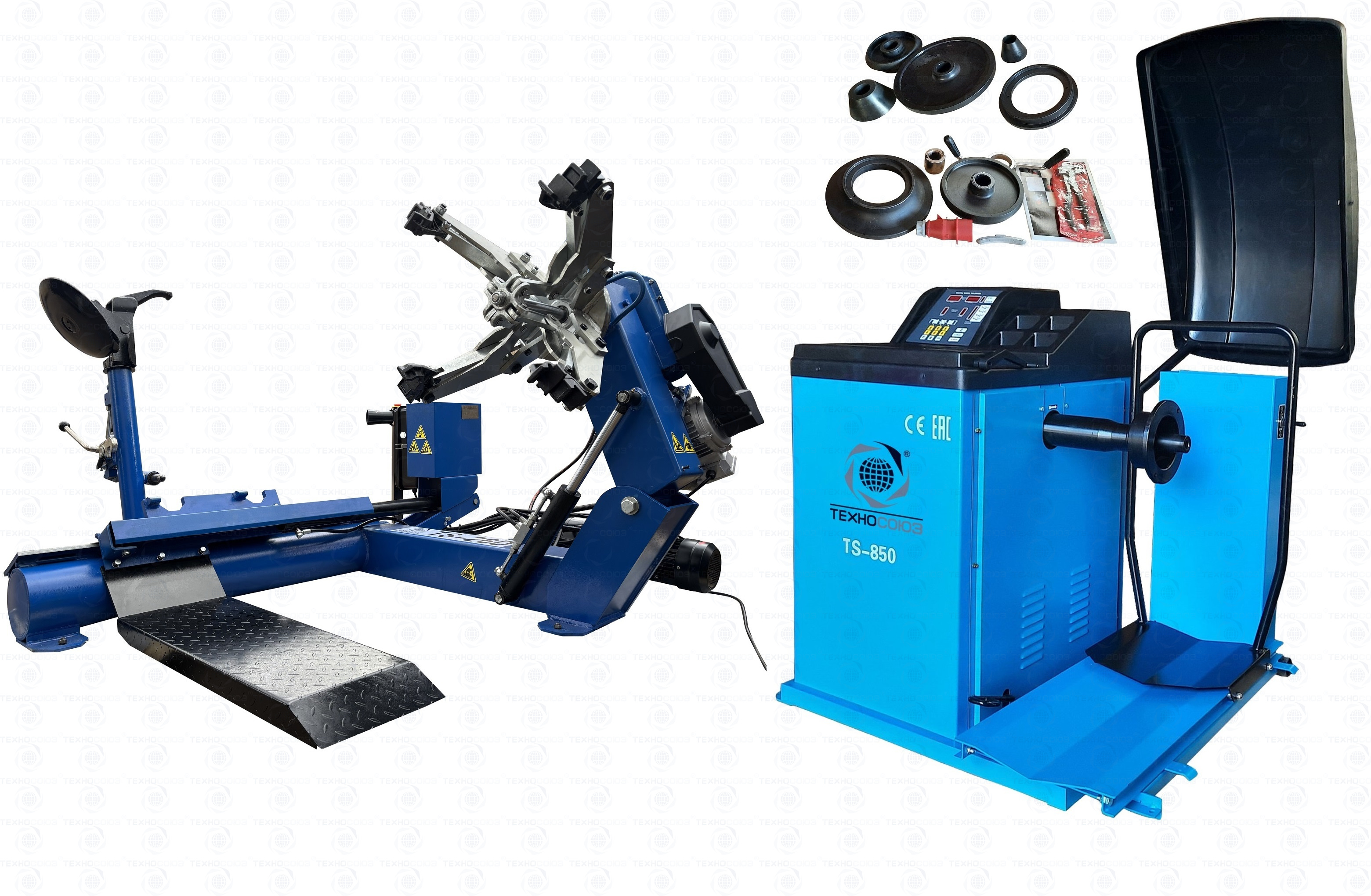 Комплект из полуавтоматического грузового шиномонтажного станка TS-26D. Отказов и рекламаций нет!!!  Диски сталь, AL, с кольцами и без, 14÷26” с адаптерами 14÷42”(опция), Колесо макс. Ø1600 ширина 780мм, до 500кг. Моторы 1,5 + 2,2кВт. Гидравлика – немецкая «BUCHER HIDRAULICS». Гарантия до 18мес.