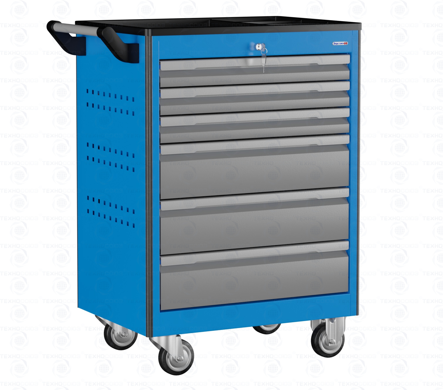 Тележка с 6 выдвижными ящиками предназначена для хранения и транспортировки к рабочему месту инструментов, приборов и другой оснастки, необходимых для работы на сервисных и слесарных участках, а также в цехах заводов и на промышленных предприятиях.