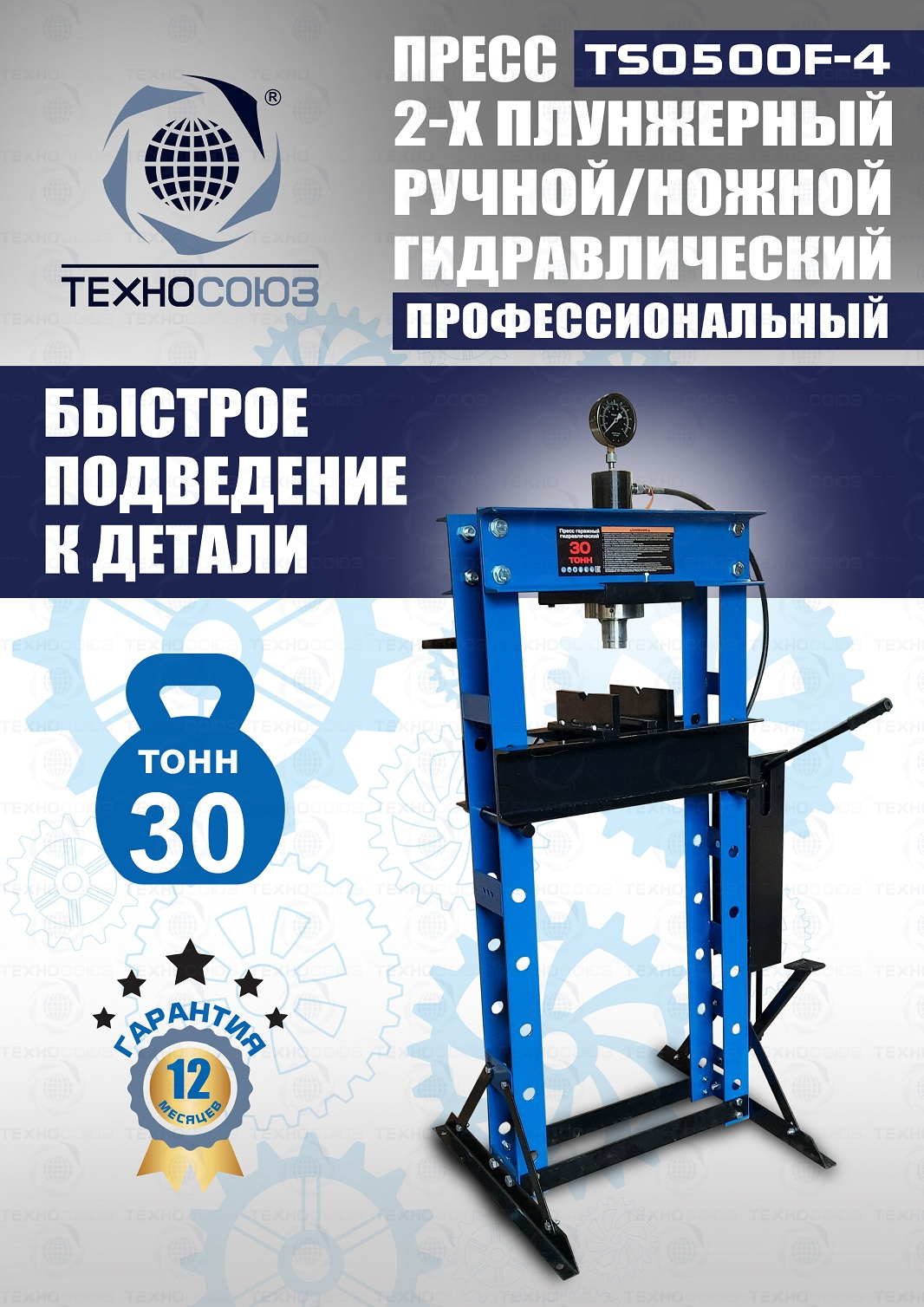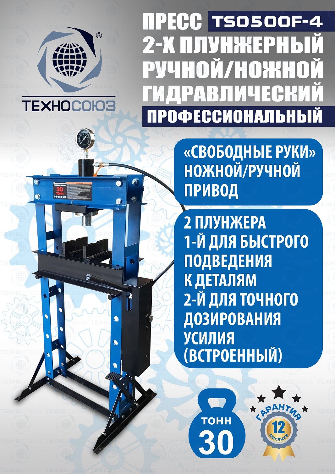 TS0500F-4 Пресс гидравлический ручной/ножной, 30 тонн