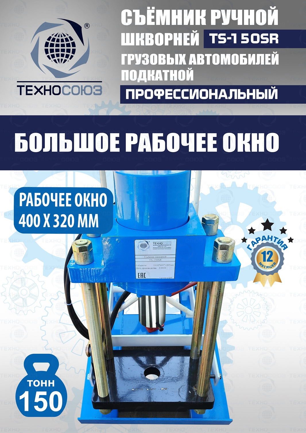 Позволяет работать под разными углами 1 человеку. Сокращает время ремонта. Мобильный. Для выпрессовки шкворней из поворотной цапфы. Для коммерческих и грузовых авто отечественного и импортного производства: MAN, MERCEDES, SCANIA, VOLVO, Корейские и Китайские автомобили, а также трактора, погрузчики, спецтехника. Ручной гидравлический привод. Рабочее окно 400x320 мм. Усилие 150 тонн. Можно использовать при выездных работах. Применяется для выпрессовки подшипников, валов, втулок, сайлентблоков.