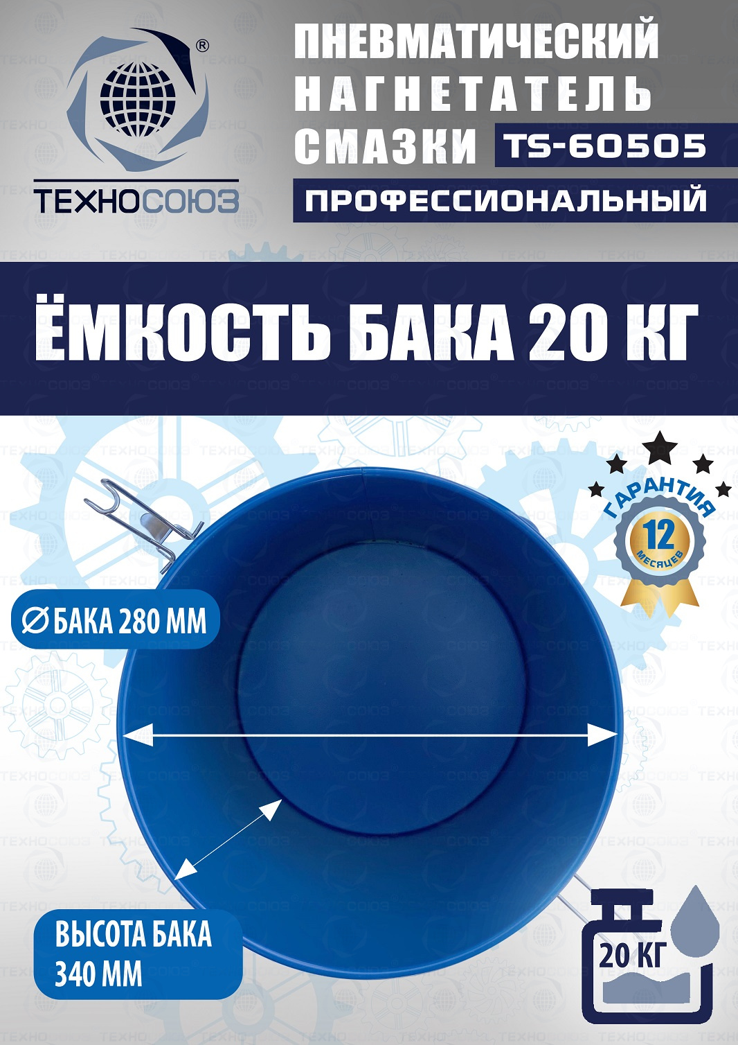 TS-60505 Нагнетатель смазки пневматический 20 л